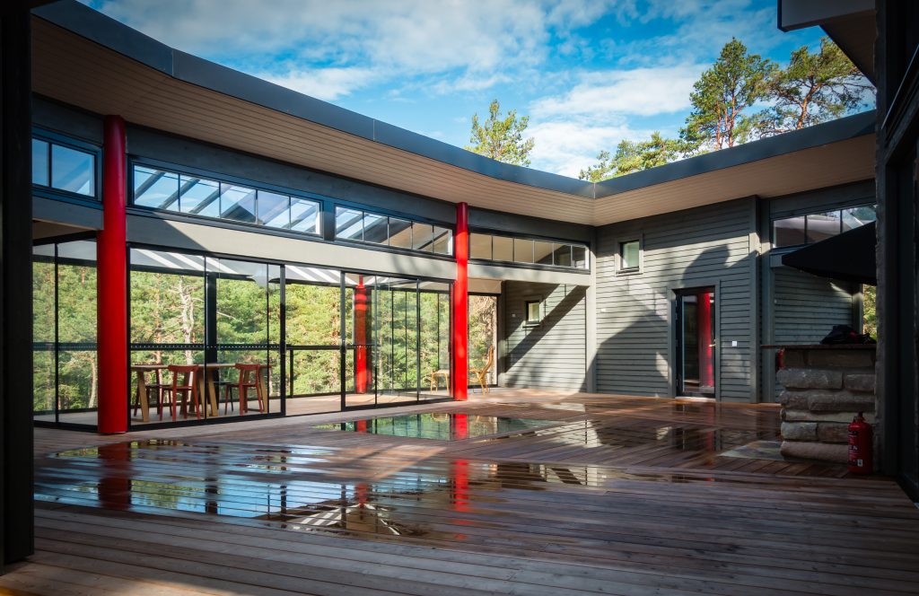Villa Viuhkan selkeän ydinkonseptin ansiosta sen yksilöiminen kunkin asiakkaan tarpeisiin on helppoa – terassia reunustavat siivet ovat helposti mukautettavissa eri käyttötarkoituksia varten.